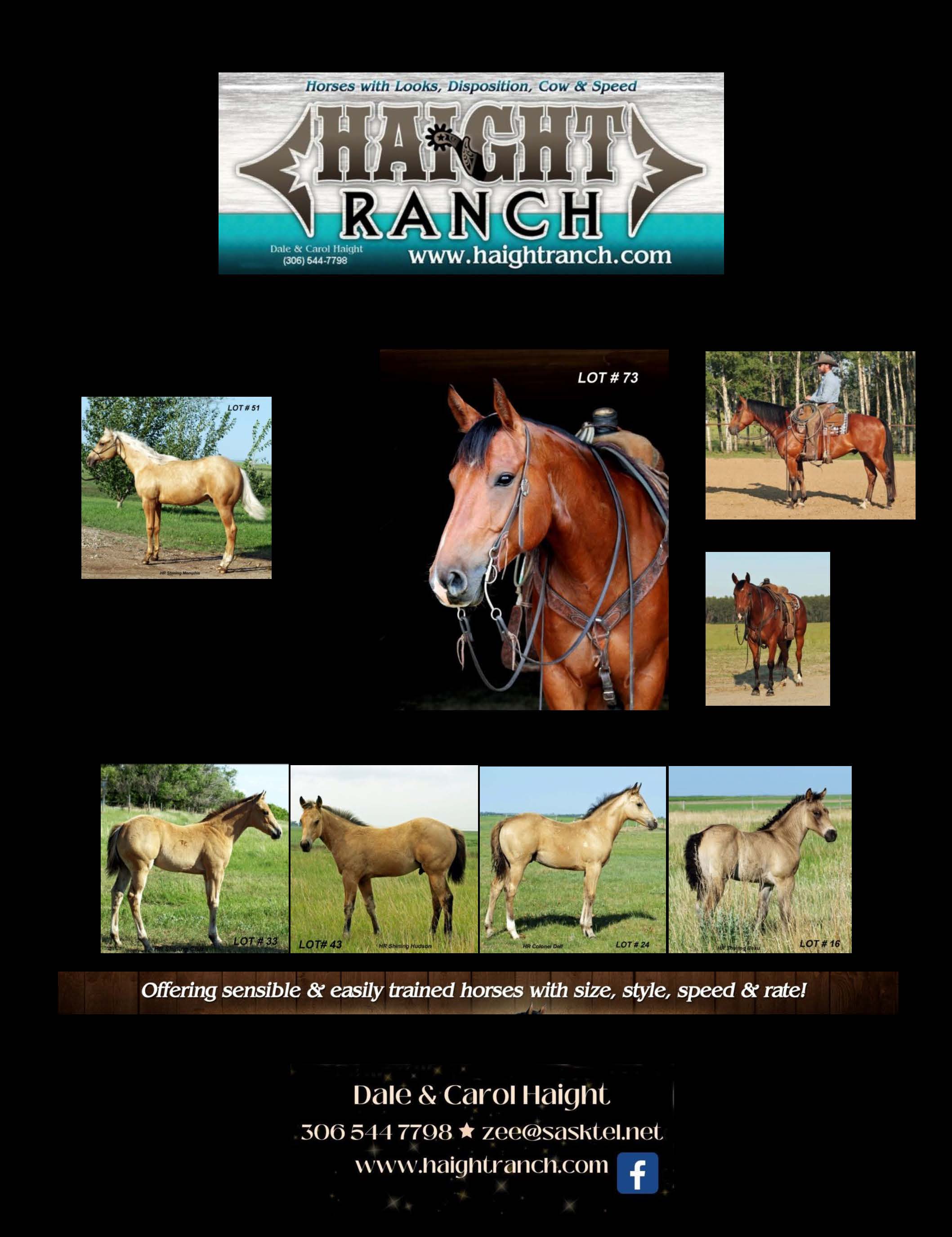 for photos & info. Coggins tested. USA Vet. inspected. Watch for a video closer to sale time at www.haightranch.com or face book under Haight Ranch. Please call 306 544 7798 for info
