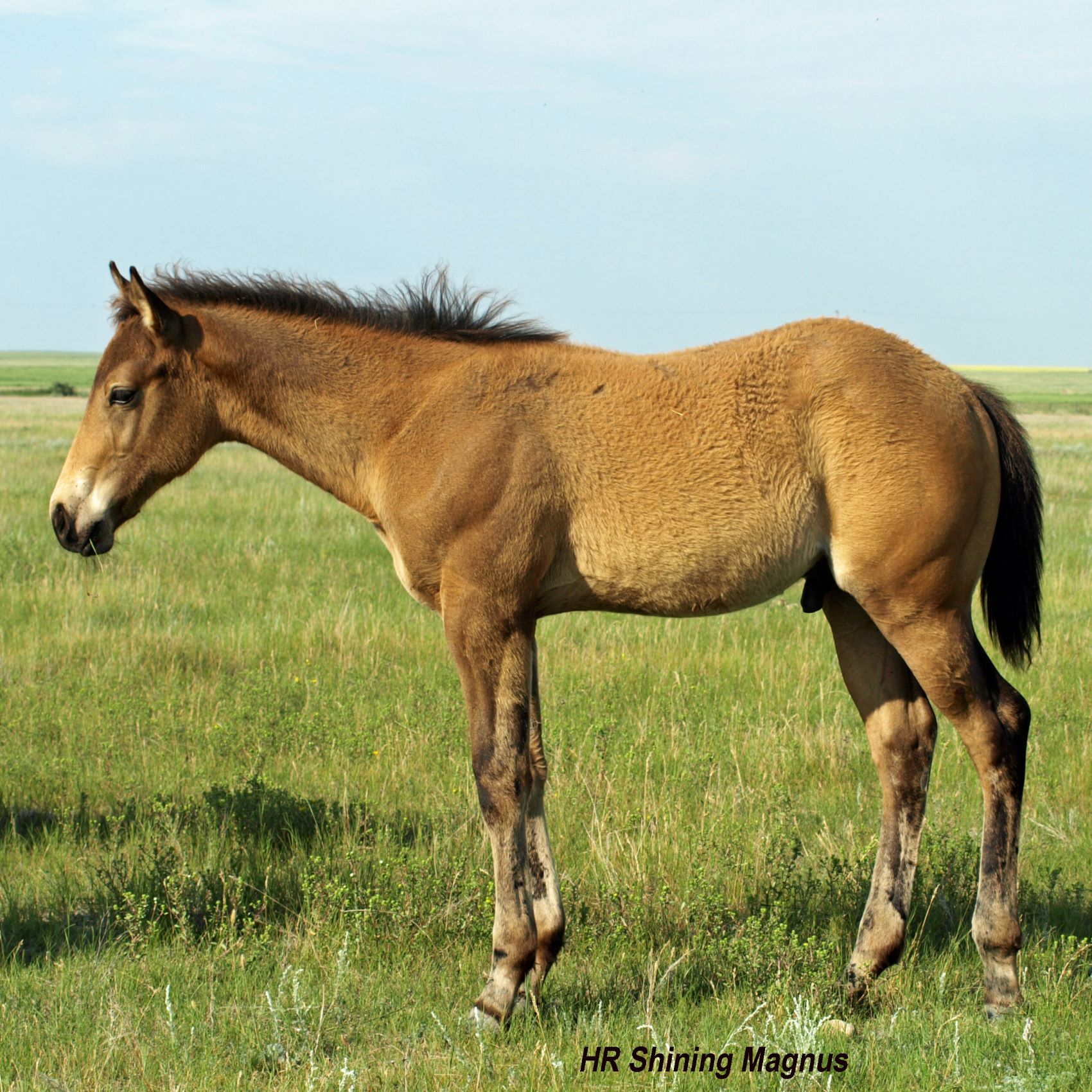 This big buckskin colt has a big shapey hip and the power & conformation needed to compete in any arena or ring. His sire, Hes Busy Shining, produces pretty, the bone, the conformation and the athletic ability that we all look for today in our performance horses. His colts will dominate BARREL & ROPING events. Crossed on our big ranch mares like this colt's dam, carrying a touch of speed genetics, the resulting foals are outstanding! They have the makings of tremendous BARREL and RANCH HORSES, as well. His guy will be just that - he has "performance" written all over him! Halter broke, bathed, round penned, feet trimmed & taught to tie, load & haul. Watch for video closer to sale time at www.haightranch.com or face book under Haight Ranch. Coggins tested, USA Vet. inspected. Please call 306 544 7798 for info.