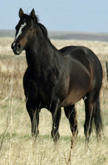 Profit Power AKA "CASH" - this big, black & beautiful stallion was special! He was intelligent & laid-back with tremendous speed. He was correct with good bone and a great wither. Under saddle, he showed he has the talent to excel and the strength to compete in any physically demanding job. He was a good head horse and could drag calves all day. He was awesome! Cash's foals have exceptional minds…. they are especially friendly and many family's are enjoying "Cash" sons & daughters. They all have good bone and are correct & balanced, with big hips and great looks. He sired the "Overall High Selling Horse" at the SBL Sale in Sheridan, Wyoming two years in a row, as well as many Champions & well-loved ranch, barrel and family horses. He sired size, ability and speed for working-cowboy, arena, barrel or rope horses. His genetics provided a fabulous outcross for cow-bred mares. . We still have quite a few prospects sired by Profit Power that we will offer for sale in future. Perhaps Profit Power's greatest legacy is in his daughters. We have several of his beautiful big daughters who bring in a top-notch foal each year! It was truly a privilege to own such a magnificent horse!